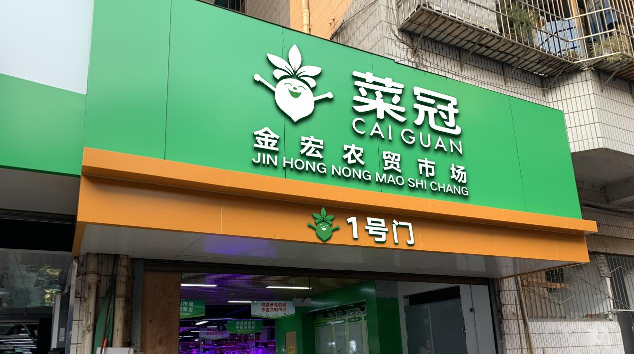 菜冠·贵阳金宏市场位于贵州省贵阳市南明区油榨街10号,总建筑面积2552平方米,是菜冠集团进军贵阳的首个智慧型农贸市场,属于混凝土结构市场。整个市场建筑共两层,市场内的业态以鲜肉区、蔬菜区、豆制品、水产、粮油、干杂、白条为主。 菜冠·贵阳金宏市场毗邻油榨街、宝山南路、富源路、东新区路等道路,周边人口密集,常住人口十余万人环伺左右。市场辐射冶金厅小区、香樟南国、贵州之光、花园广场、鸿华兰苑等近百个醇熟小区,为数10万群众提供“菜篮子”生活服务。临近地铁口与公交站点,周边交通便利,为消费者提供了便利的购物体验。市场1.5公里内,南明实验小学等30多个学校幼儿园及近百个教育培训机构环绕,超千名学生覆盖,民生刚需消费,财富商机无限。2022年7月13日与贵阳贵钢物业公司正式签署协议;2022年8月31日金宏市场正式开始升级改造,9月份因贵阳南明区疫情局势严重,升级改造项目被迫暂停一个月;2022年12月底市场内部和商业街的升级改造全部正式完成,正式投入使用顺利营业。金宏市场整个市场采用智慧设备、智慧电子称、智慧系统于一体的智慧农贸市场。